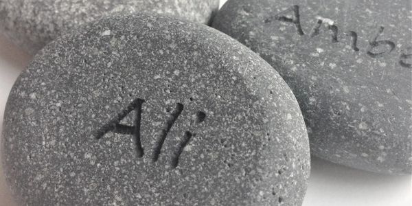 Each small stone was naturally polished by the ocean and can be engraved with the pet's name, a few short words, or a date. As the stones are small, the maximum number of letters is 22.